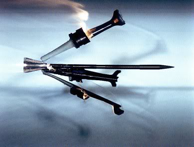 至于减小激波阻力的办法就更简单了——把头削得越尖越好,头越尖,激波越弱,就好比前方迭加的浓密空气层被尖锐的弹头“刺穿”了一样。