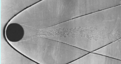 ▲在这圆球头尾部出现的粗黑线就是“激波”了