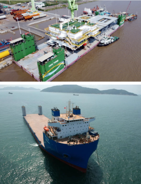 通常单一的部件运输任务可利用甲板运输驳船、半潜运输驳船实现。上船院具有6000~100000载重吨的甲板运输/半潜船的设计建造船型。
