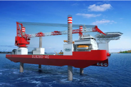 其中,上船院自主设计的 “顺一1600”号深潜坐底多功能风机工程船,设计新型独特,集基础施工和风机安装于一船,可全方位满足海上建设安装的各种需求,最大甲板载荷量达到4000吨,能完成10兆瓦海上风机的基础、塔筒、机舱及叶片的运输和安装,使用范围广,作业效率高,极大提高了我国海上风电工程的施工能力。