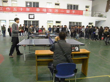11月19日晚校工会和团委联合举办的新进青年教师乒乓球赛在北校区大学生活动中心举行。