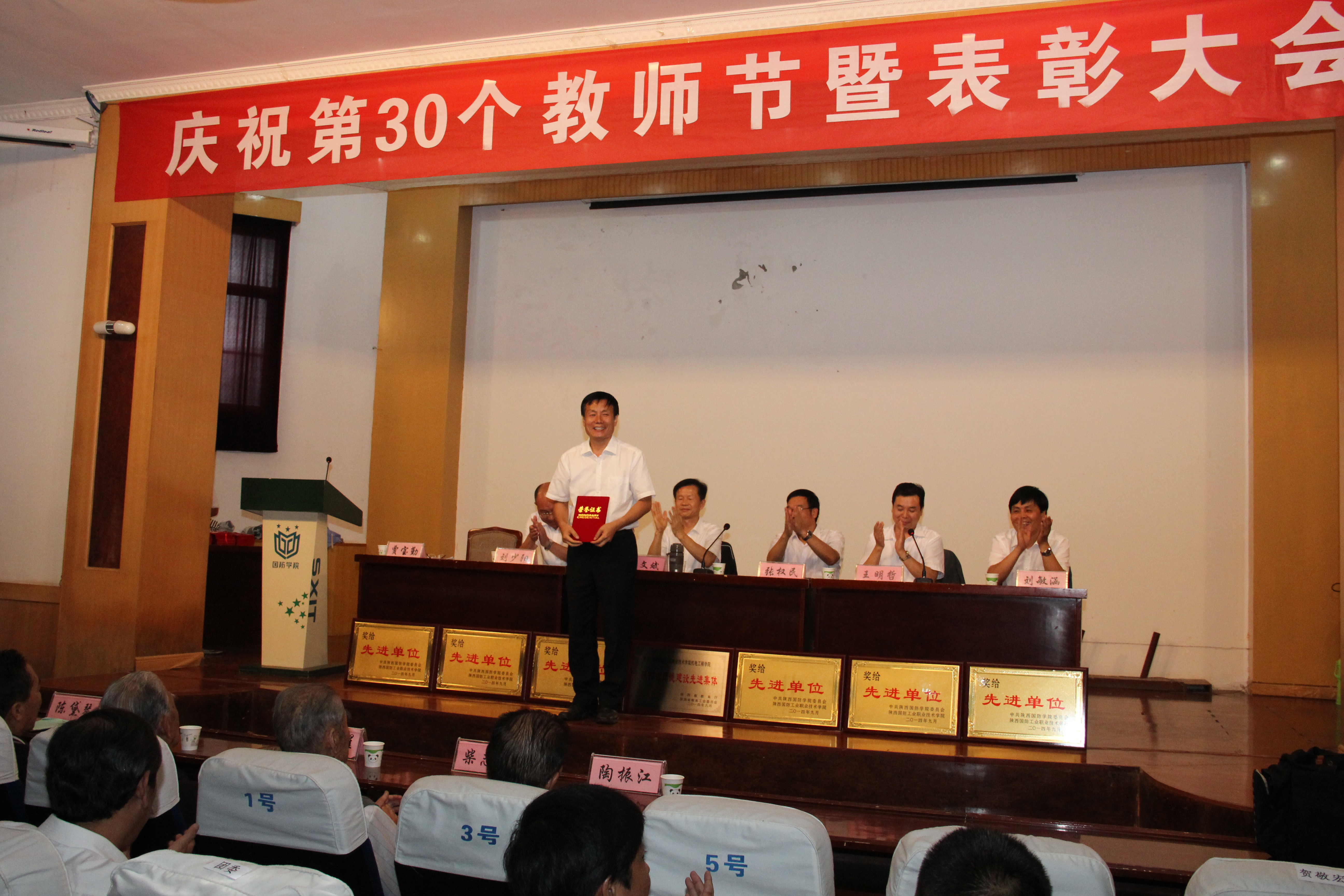 表彰大会在雄壮的国歌声中开始,院长张权民发表了热情洋溢的教师节致辞。他代表学院党政向全体教师、职工、离退休人员致以节日的问候和崇高的敬意。向在今天大会上受表彰的各类先进表示热烈祝贺。他简要回顾了过去一年学院在建设、教学、科研等工作中取得的成绩,分析了当前学院面临的形势,要求全体教职工凝神聚力,走以质量提升为核心的内涵式发展道路,扎扎实实抓改革,认认真真育人才。为此,下半年乃至今后时期,我们要抓好以下几方面工作:一、认真学习贯彻落实全国职教工作会议精神,正确把握发展方向;二、加快实施教育教学质量提升工程;三、不断深化管理体制改革;四、积极转变职能,强化师生管理与服务;五、加快基础设施建设步伐。