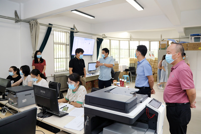 校领导详细查看了招生录取现场,重点询问了我校招生工作流程和招生录取工作进展情况,现场查看了线上咨询、档案审阅、招生录取等操作流程演示,认真听取了我校今年招生录取工作开展情况汇报。