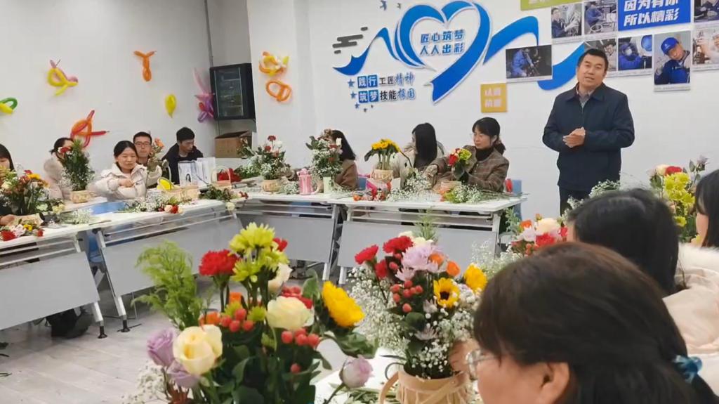 活动以插花制作为主,大家发挥自己想象力,认真创作,深入交流互动。在活动中还穿插了“有奖竞猜”环节,增添了活动趣味。现场欢声笑语、精彩纷呈,每位女职工都积极参加活动,脸上洋溢着幸福快乐的自信,营造了欢乐祥和的节日氛围。