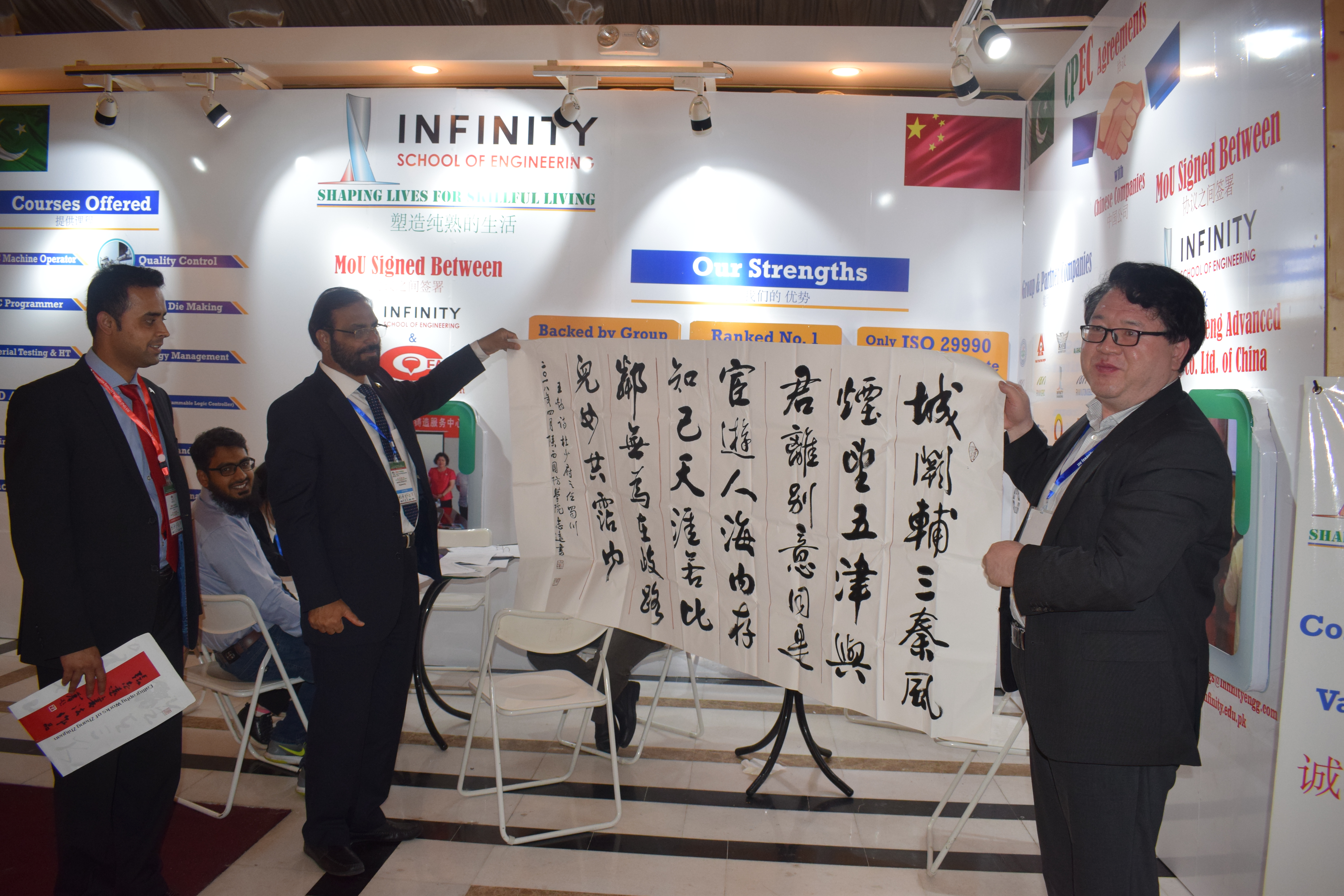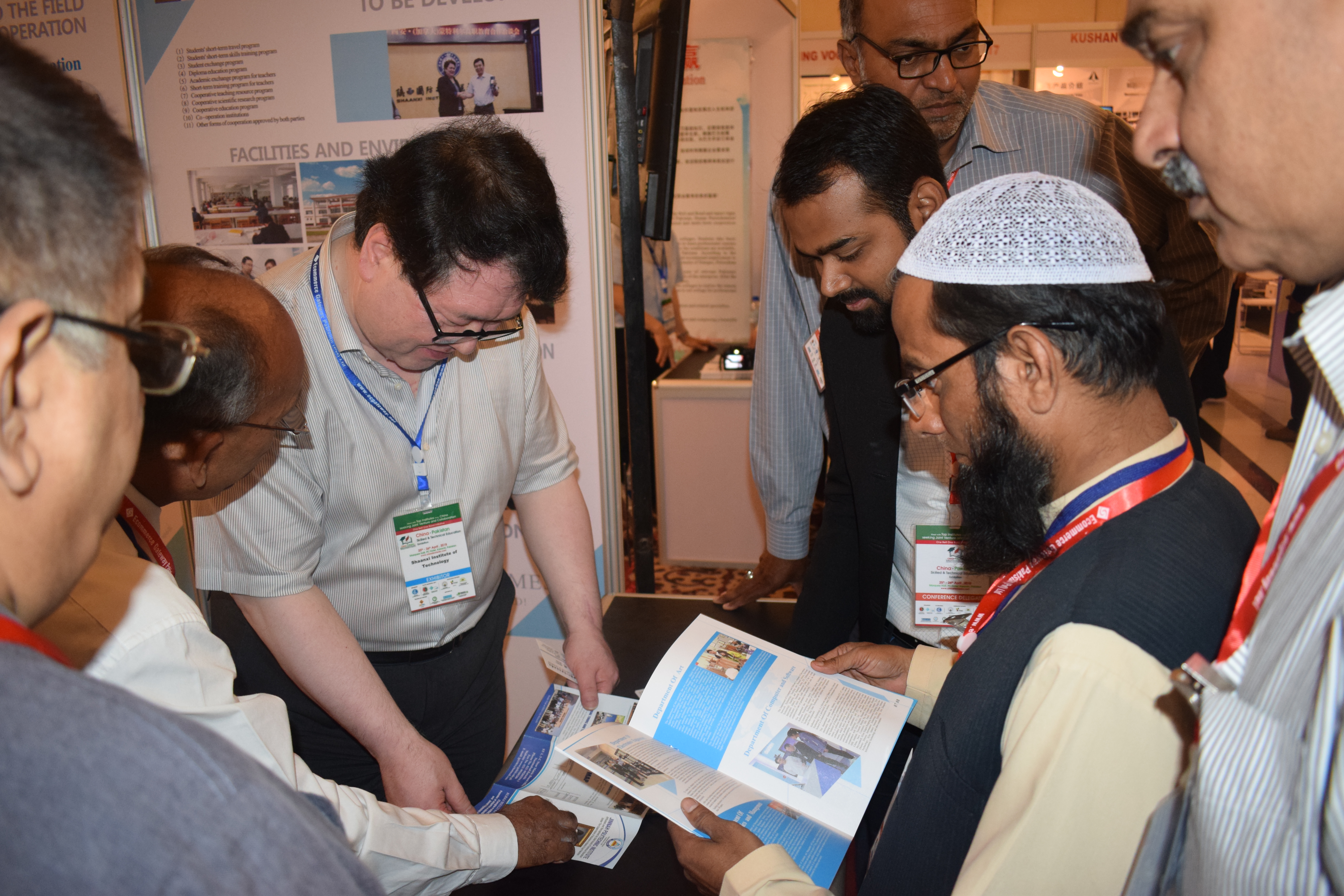 4月25日、26日,学院在主会场进行了学校办学及国际合作情况展览。期间,巴基斯坦信德省政府首席部长Murad Ali Shah、巴基斯坦海军上将Arif Ullah Hussaini、巴基斯坦信德省职业教育委员会Masroor Ahmed Sheikh等重要官员,以及来自巴基斯坦百余所院校及相关机构代表来到我校展位,全卫强副院长向参会代表详细介绍了我校办学实力和国际合作办学优势等情况,收到参会代表认可和赞赏。期间,学校与巴基斯坦奈德工程技术大学、巴基斯坦远程教育学院、Dawood 工程大学等6所巴方院校签订国际职教合作文件。