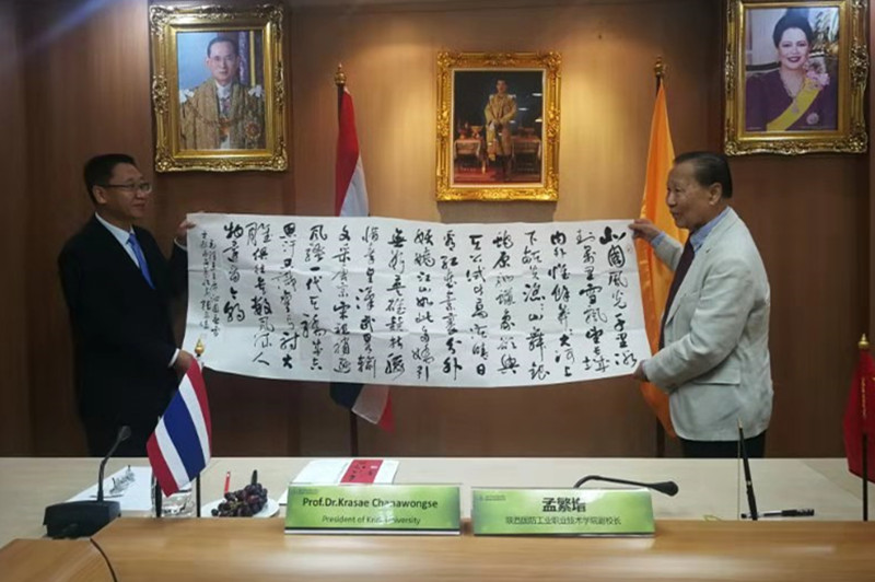 孟繁增副院长对Prof. Dr. Krasea Chanawongse校长的热情接待表示感谢,向格乐大学介绍了我校的办学历史、专业设置和办学特色,他表示,中泰两国友好关系源远流长,中国连续五年成为泰国最大贸易伙伴,“泰国4.0”计划和中国“一带一路”倡议的高度契合为双方的合作带来了良好契机。我校高度重视利用国际资源提升办学能力与水平,东盟国家特别是泰国是中国“一带一路”倡议的重要节点,希望两校以本次洽谈为契机,进一步加强沟通,积极推动合作项目早日落地实施,交流互鉴,合作共赢,共同推进双方发展。