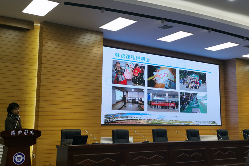 10月13日下午,2020年韩语选修课开课宣讲会在教四报告厅举行。我校国际交流处邀请到了西北大学中韩教育中心执行主任沈浤老师一行为广大学生进行韩语课开课说明,来自各分院近100余名学生参加了宣讲活动。