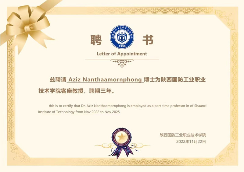 在签约仪式结束后,孟繁增正式代表学校聘请宋卡王子大学计算机与软件学院院长Aziz Nathaamornphong博士为我校客座教授,并颁发了聘书。Aziz Nathaamornphong博士在讲话中感谢我校提供的工作平台,并表示将为我校未来的建设和发展贡献自己的力量。