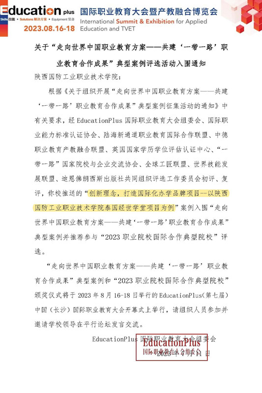为深入贯彻党的二十大精神和习近平总书记对职业教育工作的重要指示,8月15日至8月18日,2023年EducationPlus(第七届)中国(长沙)国际职业教育大会暨产教融合博览会在湖南国际会展中心隆重召开,我校国际交流处相关负责人赴湖南长沙参加会议。