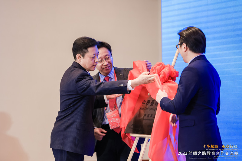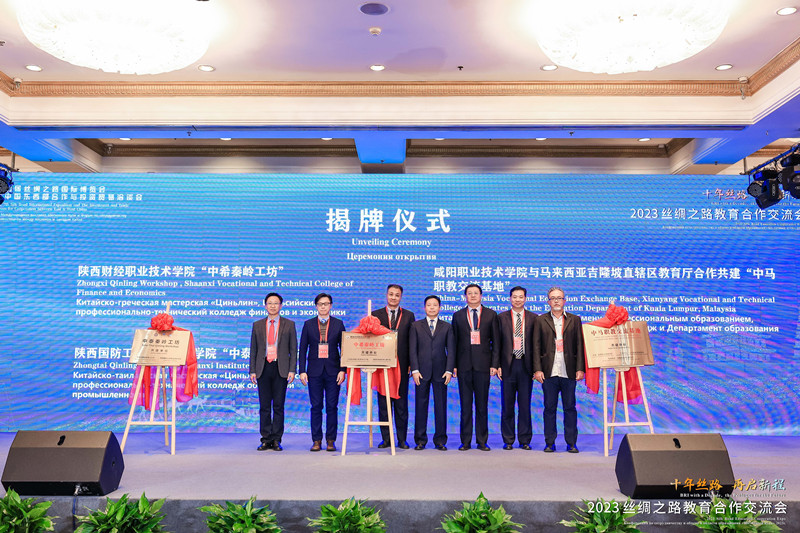 开幕式上,教育部国际司二级巡视员张晓东为我校与泰国坦亚武里皇家理工大学合作共建的中泰“秦岭工坊”揭牌。我省以“优势互补、互惠互利、求实高效、共同发展”为原则,打造“秦岭工坊”自主品牌,旨在为“一带一路”沿线国家培养适应国际市场的职业技能人才。接下来,我校将以本次揭牌仪式为契机,进一步加强同“一带一路”国家人文交流,为海外中资企业助力,为拓展陕西教育、人文、思想等领域对外交流增添新活力,将中国职业教育成功经验推向国际。