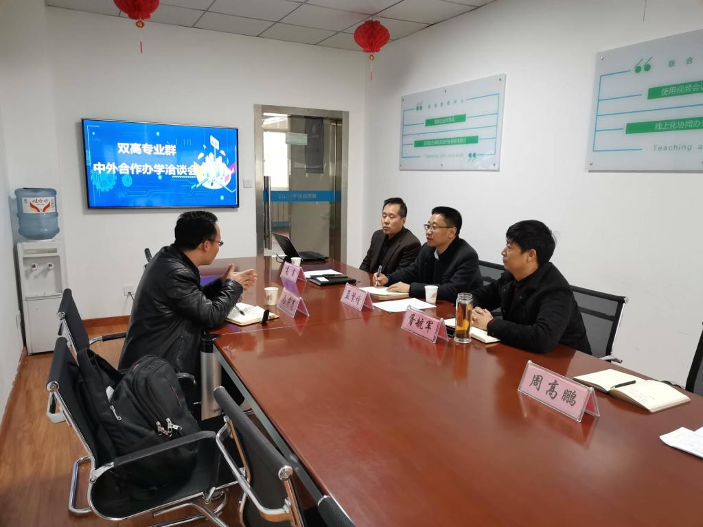 11月29日上午,我校在中兴通讯创新学院会议室举办“双高”专业群中外合作办学洽谈会,教育部学校规划发展建设中心项目执行方北京东方宇新国际教育科技有限公司项目总监马芹亮来校进行项目合作洽谈,副院长孟繁增、国际交流处处长胥航军、机电工程学院院长高葛及相关人员参加了会议,会议由国际交流处处长胥航军主持。