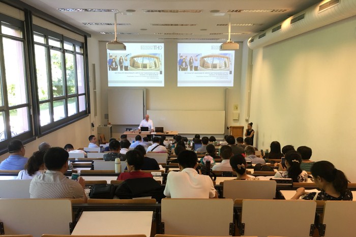 本次学术交流活动安排有序,内容丰富。包括:德国“双元制”职业教育培养模式及实践、德国工商行会在职业教育中的职能及人才培养模式实践、德国高等院校管理(行政系统和管理体系、大学的组织架构,校委员会和系委员会的职责与分工,学校财政管理和规划)、德国大学服务当地经济的实践及大学与政府的合作、德国工程师协会(VDI)工业标准的制定及标准与教学计划和课程融合、德国大学专业建设、认证及质量管理。期间,为进一步加强访学教师深度了解学习德国职业教育及专业办学,我校教师分成机械、机电、经管、汽车、建筑、电子等学术交流小组,与代根多夫应用技术大学自然科学与经济工程学院、电子和媒体技术和计算机学院、机械制造学院等学院教授分别从学院建设、学科设置和校企合作、研究和实验进进行专项交流,并实地参访了代根多夫应用技术大学实验室、代根多夫市修车行和宝马世界及工厂等。