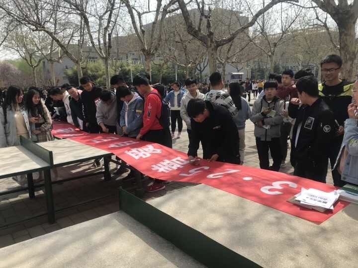 2019年3月25日中午化学工程学院心理部在二号宿舍楼东面举行了以“善爱自己 善待他人”为主题的325横幅签名活动。此次活动旨在倡导大学生善待自我、关爱自我,引导学生要以发自内心的爱与和谐来善待和关爱他人及社会,共同构建美丽和谐校园。