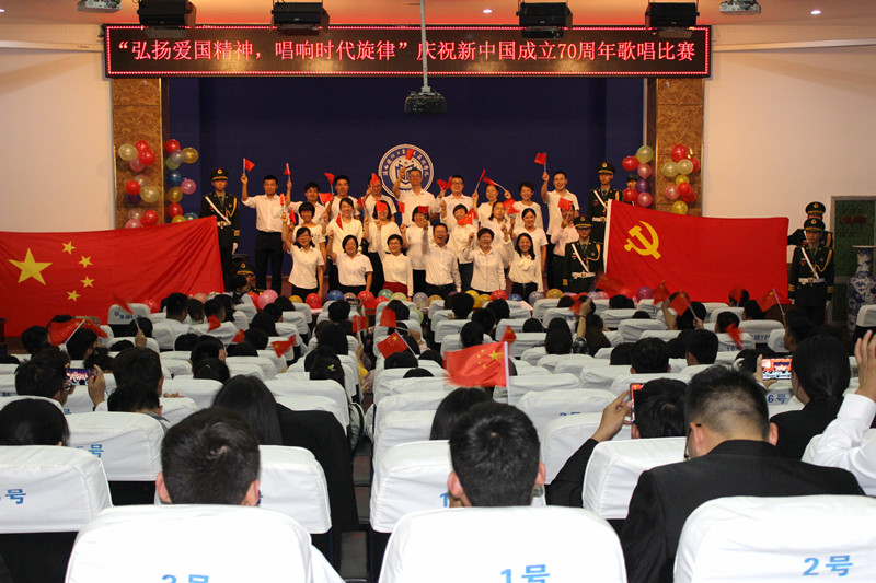 为庆祝中华人民共和国成立七十周年,继承和弘扬爱国主义光荣传统,深入开展爱国主义教育活动,营造不忘初心、牢记使命、高举旗帜、团结奋进的浓厚氛围,2019年9月29日晚化学工程学院在南校区报告厅举办了“弘扬爱国精神,唱响时代主旋律”庆祝新中国成立70周年歌唱比赛。本次比赛同时也是化工学院党总支开展的“不忘初心、牢记使命”主题党日活动。化学工程学院院长闫晓前、党总支书记孟龙、全体教师及各班级学生代表参与了活动。