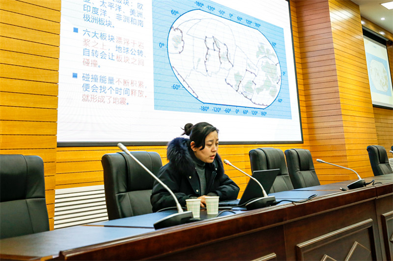 讲座现场,张怡老师以“普及地震知识 科学应对灾害”为题,围绕地震常识、防震避险和自救逃生方法等问题进行了生动详细、深入浅出的解读,并耐心解答了学生提出的疑虑,帮助同学们增强防护意识,学会在地震来袭时如何避险和更好地保护自己,增强了自我防护意识。
