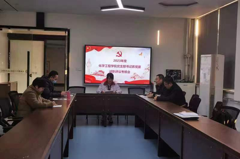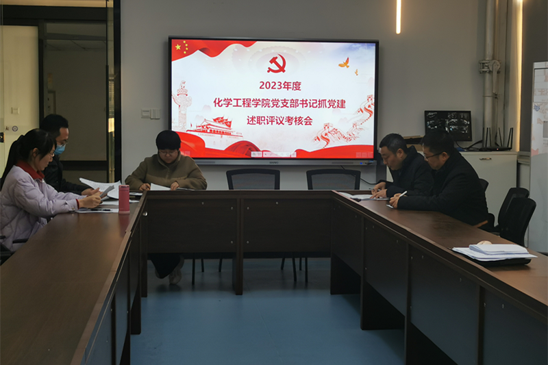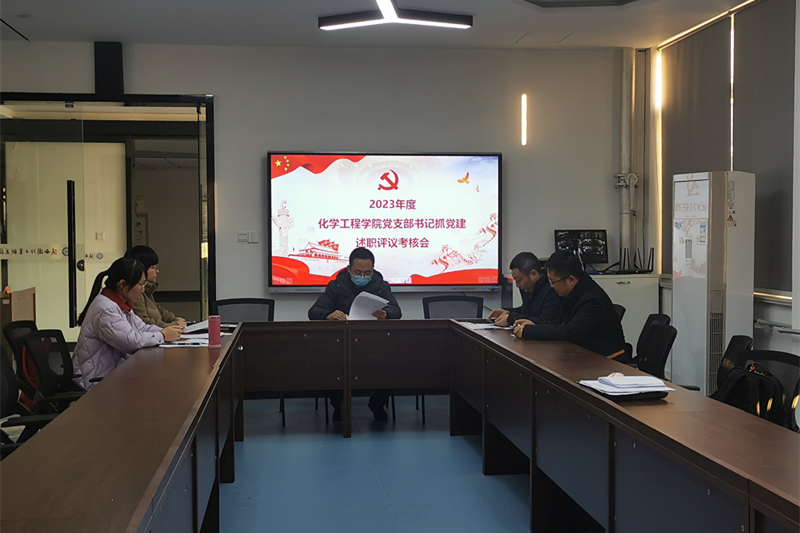 2024年1月11日下午,化学工程学院党总支在图书馆七楼科学仪器示范中心组织召开了2023年度党支部书记述职评议会,石化与安全教师党支部书记、应化教师党支部书记、学生党支部书记分别对2023年的党建工作进行了述职汇报,会议由化工学院党总支书记孟龙主持。