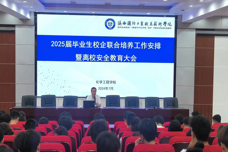 为认真贯彻落实校企联合培养相关工作部署要求,7月7日下午,化学工程学院在教二报告厅举办了2025届毕业生校企联合培养工作安排暨离校安全教育大会,化工学院院长张军科、教学科科长张郢峰及2025届全体联合培养学生参加了会议,会议由学生科科长李斌主持。