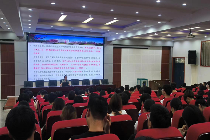 首先,李斌就校企联合培养学生离校手续办理、上岗信息报备、解约手续办理等相关情况进行了说明,重点强调了学生在企业的工作安全,要求全体离校学生定期向辅导员和家长汇报自己的思想动态和工作情况,确保按时完成校企联合培养各项任务。