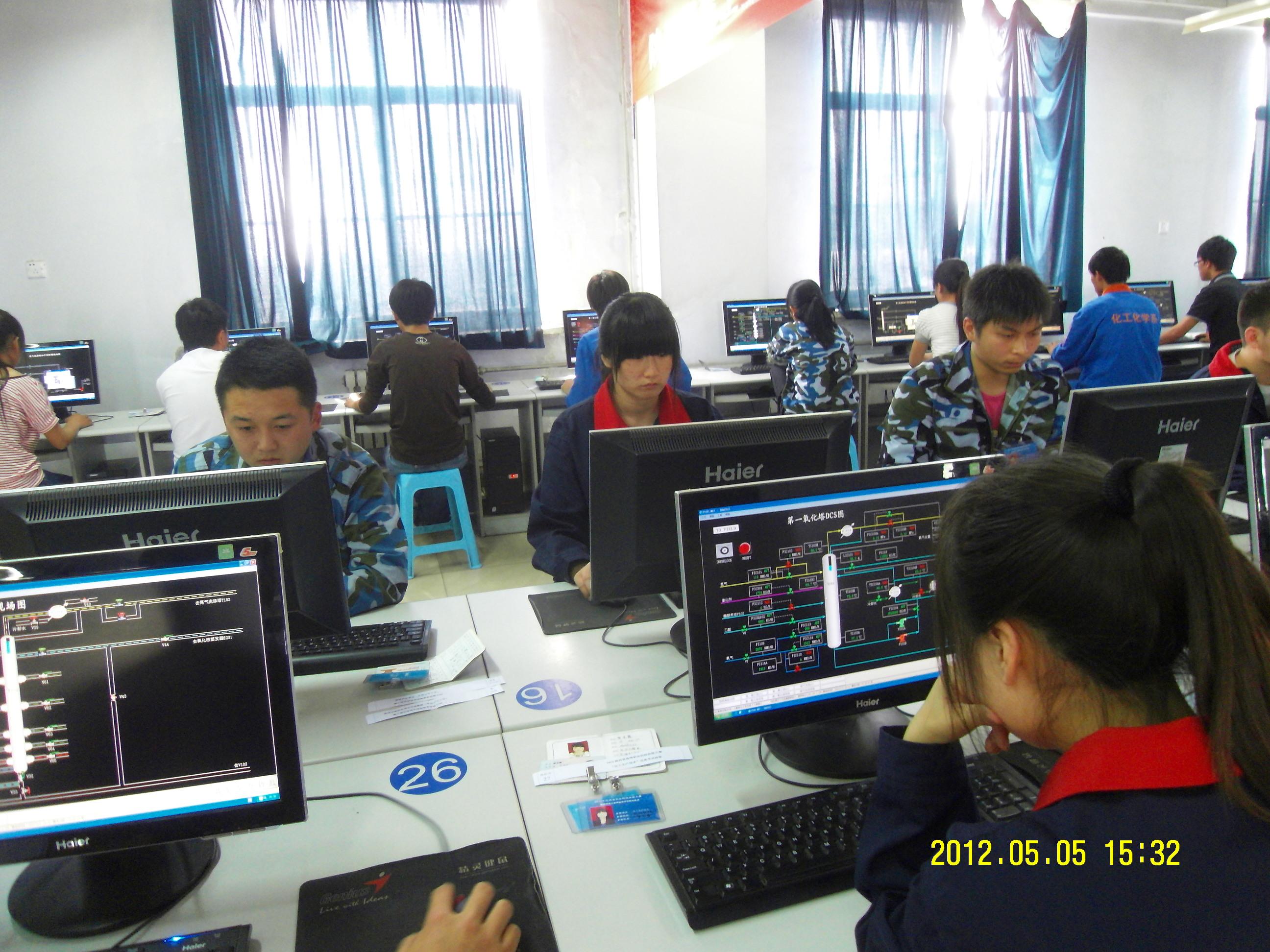 图③:化工生产仿真操作比赛现场 图④:化工生产精馏操作比赛现场