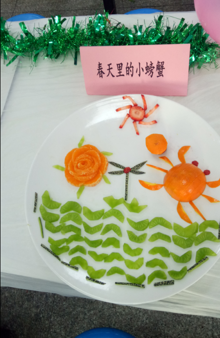 学生们的瓜果冷拼也毫不逊色,一招一式,显得十分娴熟灵活。创意冷拼“春天里的小螃蟹”“国色天香”令人眼前一亮。比赛中穿插的文艺表演及食品安全知识有奖竞猜等活动,更是将现场氛围推向了高潮。