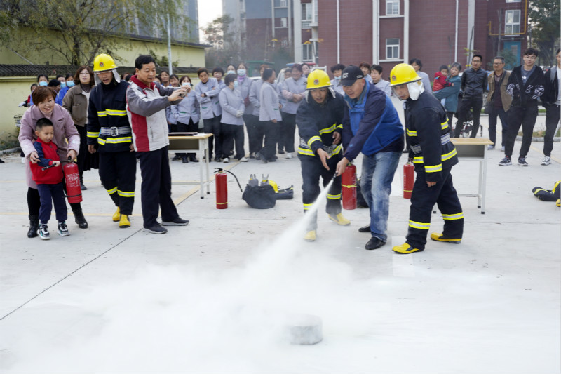 首先培训人员为大家讲解了遇到火灾如何报警、如何扑救初起火灾、发生火灾时的逃生方法和注意事项以及如何使用灭火器等消防知识,强调发生火灾造成人员伤亡和财产损失的危害性,要求严格按照消防法律要求,强化火灾预防工作。随后,组织参训人员开展实操演练,在空地上升起火盆,培训人员讲解演示扑救初起火灾的正确操作流程及注意事。最后部分师生和保洁人员在工作人员的指导下,亲自上场体验灭火实操。