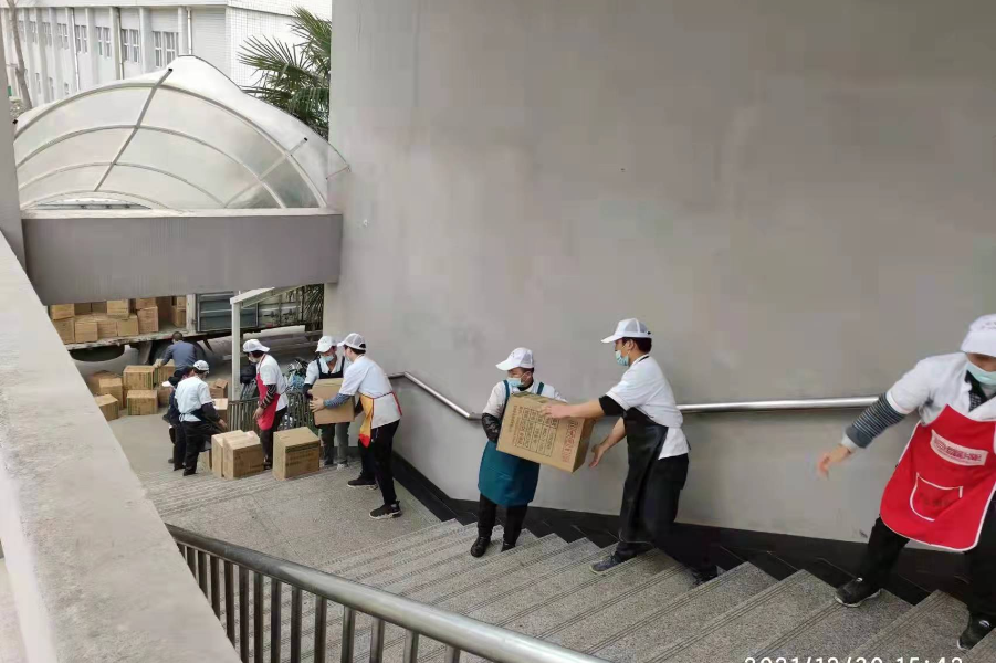 后勤办公室积极与鄠邑区疫情防控办协商,排除一切困难为物资运送车辆办理通行证,餐厅原材料供应稳定。学校超市、水果店负责人几乎跑遍了鄠邑区各大市场、供应网点,采取线上线下、“两轮四轮”相结合的方式,采购储备足量的干吃面、奶制品、饼干、面包、水果等货物,倾力保障全体师生的生活所需。