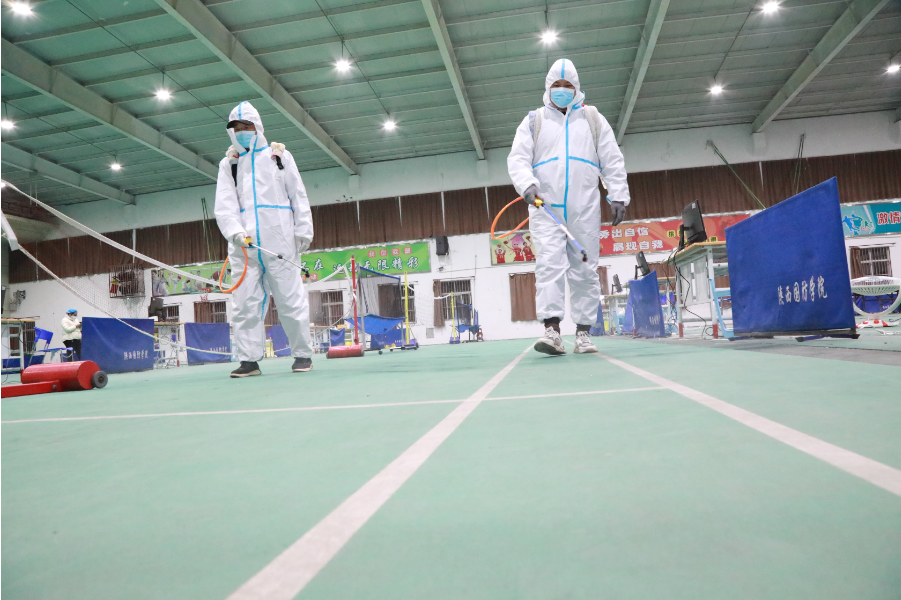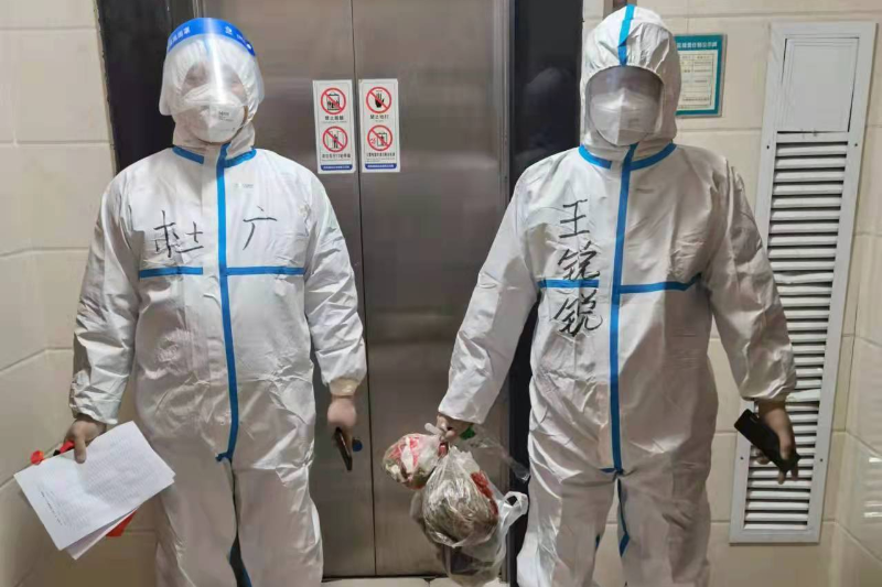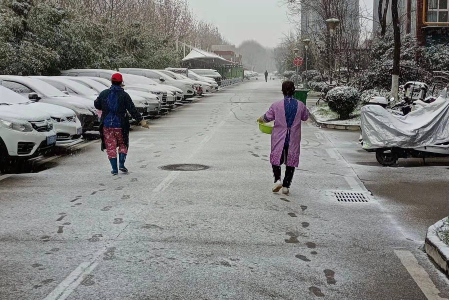 保洁人员全力做好了学校行政楼、教学楼、家属院、公寓的环境卫生清洁和垃圾清运工作。面对突降大雪,保洁所有人员自发提前1小时到达岗位,冒着猎猎寒风进行除雪作业,天才蒙蒙亮,所有的家属院和校园道路的积雪已经清除完毕。消杀组成员每天身穿厚厚的防护服,身背重达十几公斤的消杀设备,对校园角角落落进行日常消杀,对核酸检测场所进行检测前后的及时消杀。