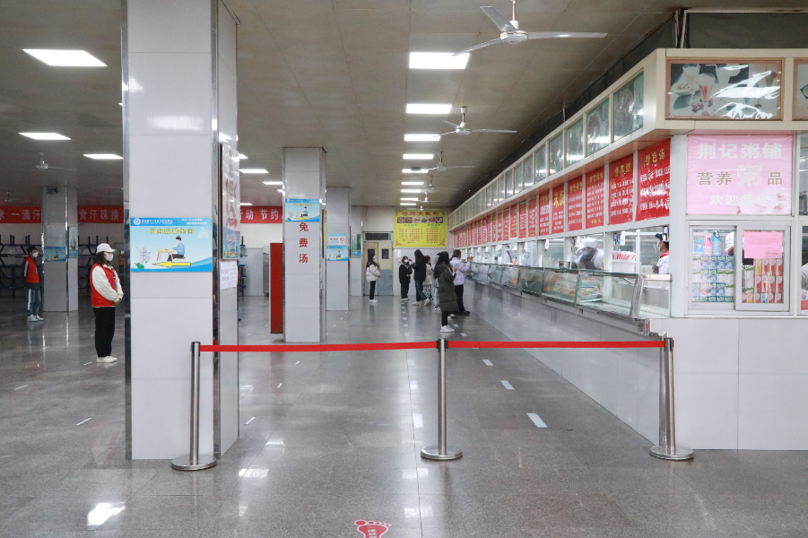 餐饮中心在服务人员减少的情况下,仍然想方设法增加样式、改善口味,精心准备一日三餐,配制高质量膳食,坚决做到服务质量丝毫不减,饭菜价格绝对不增,饭菜分量不打折扣,餐饮安全最高标准。在接到禁止堂食通知要求后,餐饮中心立即行动,腾空了大厅全部的餐桌椅,张贴就餐导引线,打餐间隔线,设立餐饮服务台,设置服务质量监督专线,确保学生购餐安全高效进行,切实做好了全校师生的餐饮保障工作。
