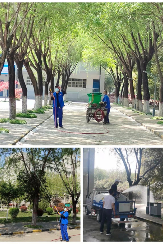 给校园和家属院柳树喷洒药物,减少柳絮的产生,及时对路面柳絮进行清理,增加洒水频次,排除安全隐患。