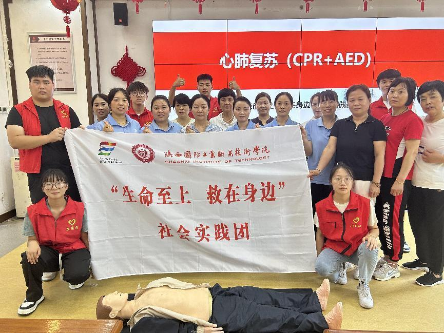2024 年 7 月 13 日,为提高社区老年人的急救意识和自救互救能力,陕西国防工业职业学院志愿服务队走进鄠邑区荣华亲和源养老养护服务中心,开展“生命至上,就在身边”“三下乡”社会实践活动。活动中,志愿者们为工作人员、老人们演示心肺复苏的操作要领,叮嘱老人保持愉悦的心情,适当锻炼身体,注意身体健康。志愿服务队负责人李旺泽深有感触的说:“通过这次活动,让我感触最深的就是老年人的健康问题,要把人人学急救,急救为人人的科普活动普及到每一个人,让更多人来关注急救常识。”
