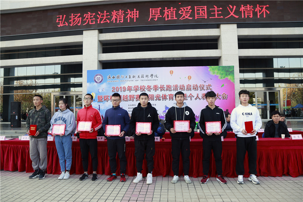 大会第一项全体师生奏国歌、升国旗。第二项由学院副院长全卫强讲话,全卫强指出,开展冬季越野赛活动,是对同学们心理素质,身体素质,体育运动水平的一次验收,也是对全体师生组织纪律性、健康水平和精神风貌的大检阅,是我们发扬团队精神、协作精神、奉献精神的具体体现。希望参赛人员以饱满的精神,昂扬的斗志,拼出成绩,赛出风格,让青春的活力迸发在赛场上的每个角落。发扬更高、更快、更强的奥运精神。大会第三项学院副书记杨聪宣布《关于表彰2018至2019学年学生阳光体育先进个人的决定》并对100名“阳光体育”先进个人进行表彰。最后由学院党委副书记、纪委书记王明哲宣布2019年冬季长跑活动启动仪式开幕。