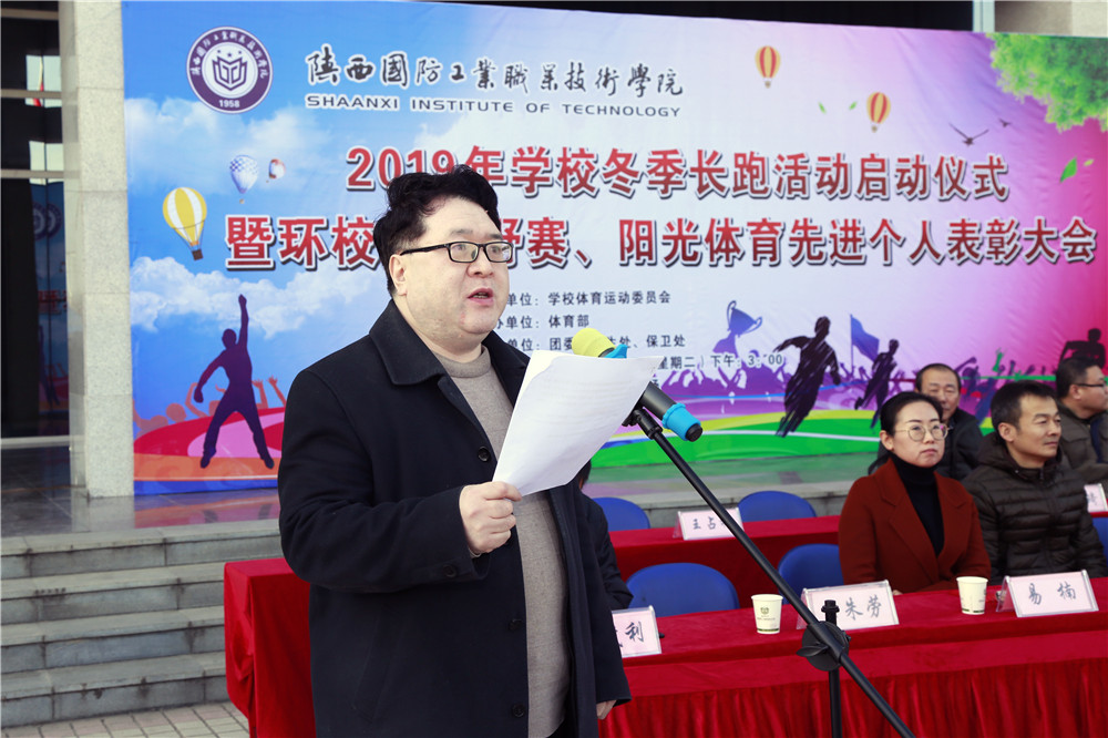为贯彻教育部办公厅《关于开展“师生健康中国健康”主题健康教育活动的通知》(教体艺厅函〔2018〕10号)精神,全面贯彻落实教育部、国家体育总局、共青团中央联合下发的《关于开展全国亿万学生阳光体育冬季长跑活动的通知》精神,落实我院“弘扬爱国奋斗精神、建功立业新时代”活动实施方案,我校于12月3日下午3时,在北校区图书馆前举行2019年学校冬季长跑活动启动仪式暨环校园越野赛、“阳光体育”先进个人表彰大会。学院党委副书记、纪委书记王明哲,党委副书记杨聪,副院长刘少阳、全卫强、张永军出席本次活动,宣传部、团委等相关部门负责人,各院、部党总支书记参加活动。本次活动由体育部部长王茂利主持。