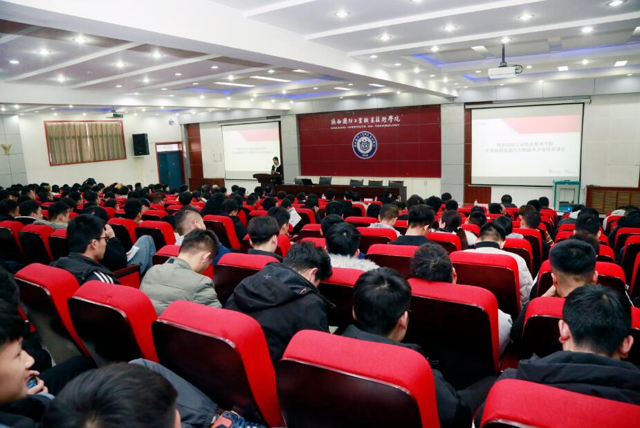 销售商代表姚景卫以景泰服务店为例,重点介绍了新能源汽车人才需求状况、工作环境及待遇等相关情况,让学生对以后的学习充满了期待。