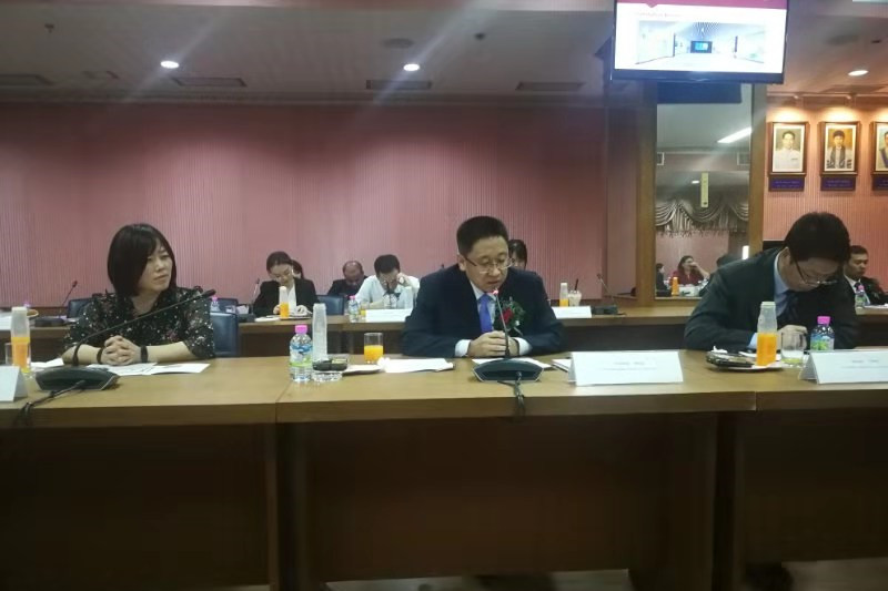 12月20日,教育部中外人文交流中心“人文交流经世项目”第一所海外经世学堂——泰国坦亚武里皇家理工大学经世学堂揭幕典礼在泰国举行,教育部中外人文交流中心主任杜柯伟、泰国高等教育部科学研究与创新部常务部长Soranit Siltharm、中国驻泰国大使馆科技参赞黄伟、泰国驻华教育参赞Mrs.Patcharawan Wongthai、泰国坦亚武里皇家理工大学校长Mr.Virach Hotravaisaya、RMUT大学委员会主席Weerasak wongsombat等出席了此次典礼。副院长孟繁增、国际交流处负责人应邀出席了经世学堂揭牌仪式。