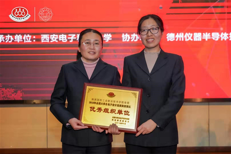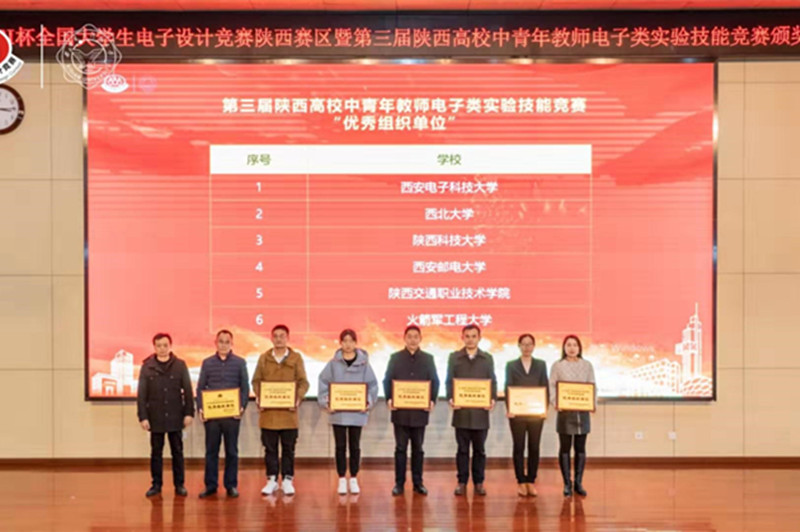 由陕西省教育厅主办,西安电子科技大学承办的“2019全国大学生电子设计大赛陕西赛区”在2019年8月7日至10日举行。本次大赛吸引了全省58所高校、800支队伍参赛。我校经过前期精心组织、全面考核、严格选拨,最终选出3支队伍参赛,荣获二等奖1项,三等奖2项,我校荣获“优秀组织奖”,毛敏老师荣获“优秀组织个人”。经过全体参赛师生四天三夜的艰苦努力,凭借扎实的专业知识、良好的实践创新能力和团队协作能力,按照比赛要求顺利完成了作品设计和实物制作。2019年8月13日,参赛学生赴西安电子科技大学新校区进行作品测评和现场答辩,选手们发挥稳定,表现良好,电子工程学院3支队伍全部获奖。