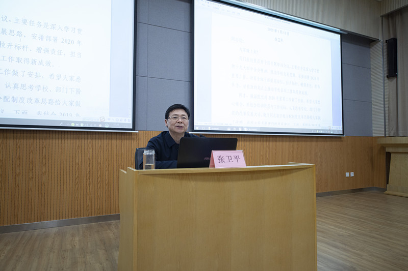 1月13日晚,院长刘敏涵发表讲话,主要就2020年重点工作进行了安排部署。人事处侯晓方处长解读了工资绩效改革实施方案(初稿)。党委书记张卫平简要回顾了2019年我校各项事业所取得的重要成绩,深刻分析了当前我校面临的机遇和挑战,并强调了我校2020年重点工作任务。