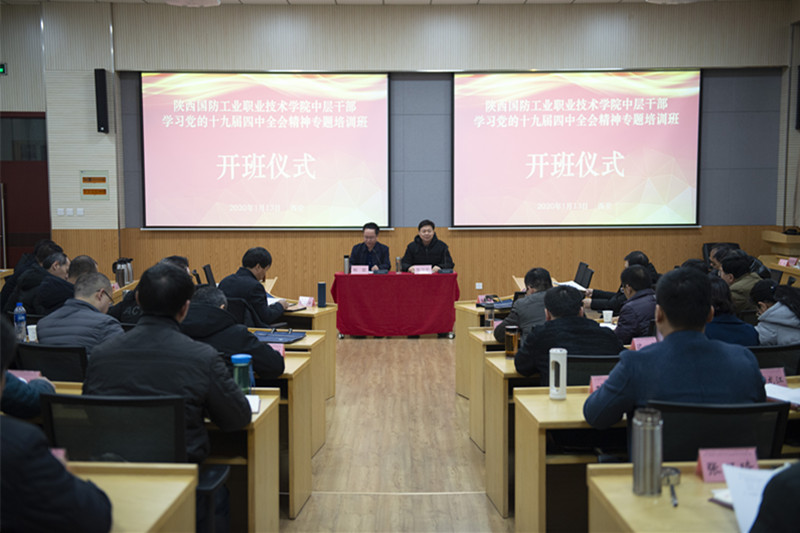 为深入学习贯彻党的十九届四中全会精神,进一步提高领导干部的思想理论水平,2020年1月13至15日,我校在省委教育工委西安石油大学培训中心举办了中层以上领导干部学习党的十九届四中全会精神专题培训班。全体校领导、中层干部参加了本次培训。