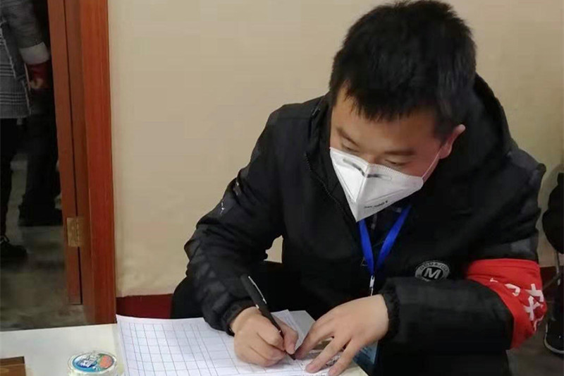 据了解,刁腾在校期间表现优秀,担任班里的宣传委员,乐于助人,努力上进,同时也是一名光荣的预备党员。年前,他刚接到宝鸡某大型国企的入职通知,尚未正式踏上工作岗位,原本想利用离校前的最后一个假期好好放松一下,走走亲戚,和老同学聚聚会。没想到疫情突然而至,但他对此毫无怨言。“只要单位不通知上班,我就坚守一线,做好抗疫工作。”刁腾说到,略显稚嫩的脸上写满了坚定。“去了国防学院,老师总让我们多参加社会实践活动,锻炼自己,回馈社会。想到自己是预备党员,就更要用党员的标准严格要求自己,发挥模范作用,冲在抗疫一线,为村民服务。” 面对接下来的志愿工作,刁腾表示自己一定会站好自己的岗位,尽力保障村民安全。