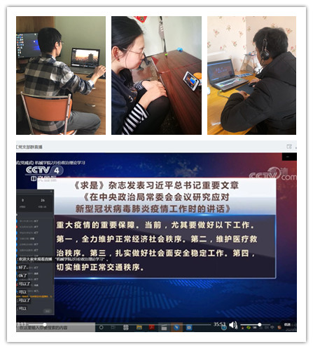 【机械工程学院】机械工程学院党总支根据陕国职党组发〔2020〕3号文件精神要求,在新冠肺炎疫情特殊时期,按照学校党委的工作安排,坚持疫情防控不放松,党员学习不间断,利用钉钉直播平台在线开展了教职工政治理论学习活动,全体教职工利用电脑、手机等设备参加了学习。会议由制图检测教工党支部书记党威武主持。