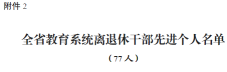 会上通报表彰了全省教育系统离退休干部先进集体49个;全省教育系统离退休干部先进个人77名;全省教育系统老干部工作先进集体36个;全省教育系统老干部工作先进工作者56名。