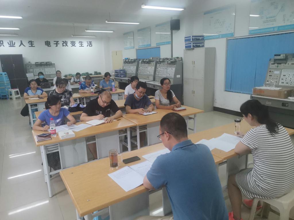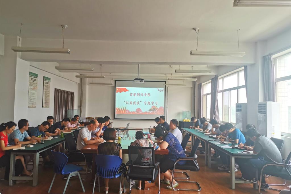 【智能制造学院】2020年8月4日下午,智能制造学院党总支在10-305开展第三次“以案促改”专题政治理论学习,学院党政领导和全体党员参加了会议。会议由智能制造学院党总支书记白福民主持。会上,白福民同志传达了深入学习贯彻习近平总书记关于全面从严治党的重要论述学习安排。白福民强调,全体党员要珍惜学习机会,不忘教育初心,牢记教师使命,切实把政治理论学习内容不断引向深入,不断践行于实际。随后,李俊涛同志领学了《习近平新时代中国特色社会主义思想学习纲要》中“以新发展理念引领经济高质量发展”章节内容;沈博同志领学了《习近平谈治国理政》第三卷“以人民为中心”章节内容;白福民同志领学了《习近平总书记在两会上的重要讲话精神》、《习近平总书记在十九届中央纪委四次全会上的重要讲话》和《十九届四中全会精神》等内容。最后,与会党员纷纷表示,要深入领会以人民为中心的发展思想,要充分认识我国经济向高质量发展的重要意义,要把主题教育与实际教育教学工作结合起来,继续发挥党员先锋模范作用,为推动我校高质量和专业群高水平发展凝聚更多智慧和力量。