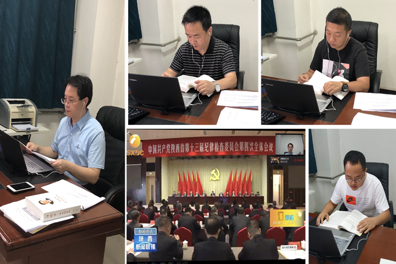 【党政机关党总支】2020年8月17日,根据学校党委《以案促改专题学习教育工作安排》的通知,党政机关党总支组织召开了党员政治理论学习会议。会议由尚晓强同志主持,党政机关党总支中层干部及全体党员参加了会议。按照会议安排,姚飞鸣同志领学了《规求无度,古都“红星”黯然陨落—西安市原规划局局长,原秦岭办主任和红星案警示》文件的学习。要求大家以案为鉴、同病共治,实现以案示警、以案为戒、以案促改。随后赵雅丽同志带领大家学习了《胡和平在十三届省纪委四次全会上的讲话》,文件强调要以习近平新时代中国特色社会主义思想为指导,深入学习贯彻习近平总书记在十九届中央纪委四次全会上的重要讲话,认真落实十九届中央纪委四次全会部署,以顽强意志推进新时代全面从严治党,不断强化对权力运行的制约和监督。会议最后全体党员同志轮流领学了《中国共产党陕西省第十三届纪律检查委员会第四次全体会议决议》,全会号召,要更加紧密地团结在以习近平同志为核心的党中央周围,不忘初心、牢记使命,攻坚克难、奋力进取,推进全面从严治党,努力开创新时代纪检监察工作新局面,为陕西追赶超越全面建成小康社会作出新的更大贡献!