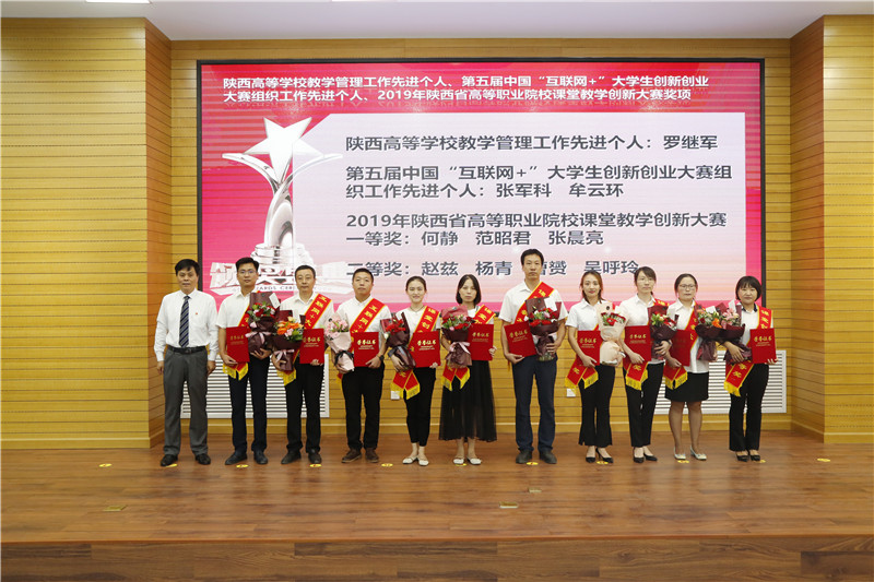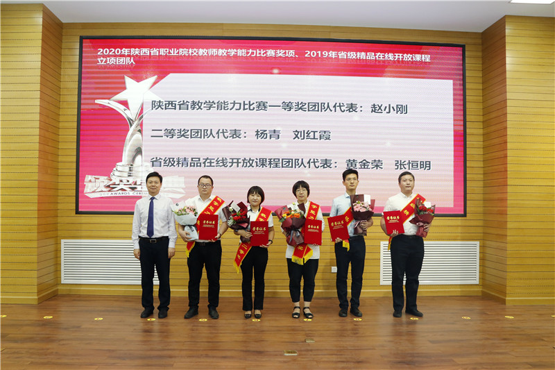 大会对2019-2020年在教学、科研、管理上做出突出贡献的团队进行了表彰。大会表彰了2018年高等教育国家级教学成果奖、2019年陕西省教学成果奖团队,第五届中国“互联网+”大赛组织工作先进集体、2019年陕西省高等职业院校课堂教学创新大赛优秀组织奖、2020年陕西省职业院校教师教学能力比赛最佳组织奖。会上还表彰了2020年陕西省职业院校教师教学能力比赛获奖团队以及2019年省级精品在线开放课程立项团队。