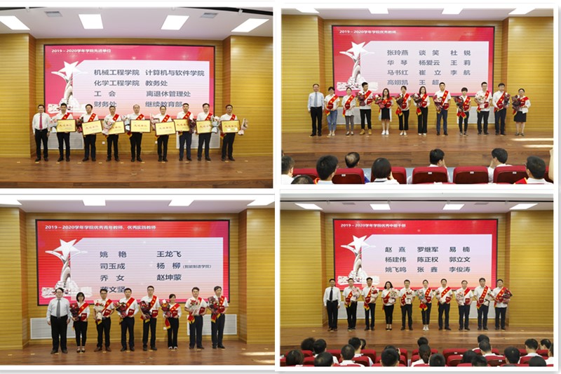 校领导依次为2019—2020学年学校先进单位、十佳教师、教坛新秀、优秀教师、优秀青年教师、优秀实践教师、先进教育工作者、优秀辅导员、优秀中干颁奖,在场领导及教师对获得表彰的先进集体和个人表示衷心地祝贺。