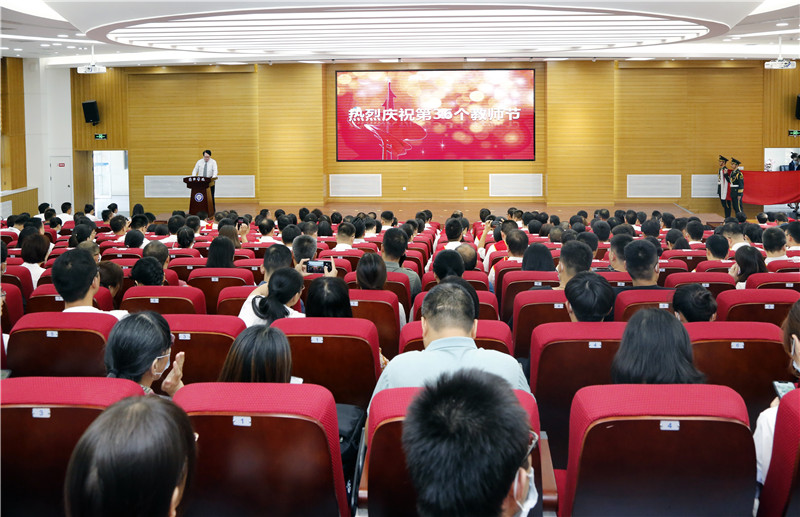 硕果盈枝,春华秋实。在这收获金色的美好时节,betway必威中文正版全体教师和教育工作者迎来了第36个教师节。9月10日下午,我校在北校区教四楼报告厅隆重召开了庆祝第36个教师节暨表彰大会,共庆属于教师自己的节日。全体校领导出席表彰大会,学校中层以上领导干部、全体教职工以及离退休职工代表、学生代表等共500余人参加了大会。表彰大会由副院长全卫强主持。