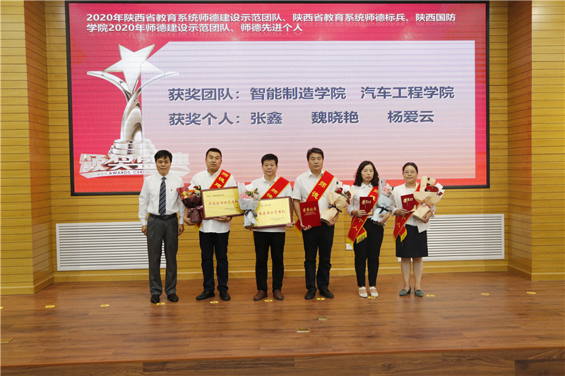 随后,会议对2020年师德先进团队及个人进行了表彰。会议表彰了2020年陕西省教育系统师德建设示范团队、陕西省教育系统师德标兵,以及陕西国防学院2020年师德建设示范团队、师德先进个人。