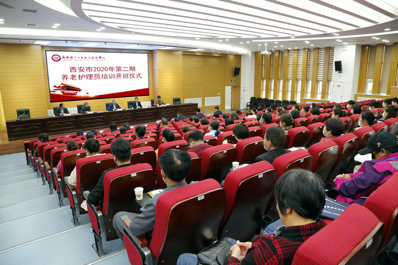 为进一步落实陕西省民政厅、人社厅、教育厅、财政厅《关于印发陕西省关于促进养老护理员职业能力提升实施方案的通知》(陕民发〔2020〕99 号)精神,按照西安市民政局养老护理员培训工作安排,2020年10月10日,西安市2020年第二期养老护理员培训在我校隆重开班。培训由我校继续教育部承办,西安市民政局养老服务和慈善事业促进处处长王大力、鄠邑区民政局局长郭长林、副局长郭碧、陕西省天健养老护理员职业技能鉴定中心主任徐岷利及我校党委书记张卫平、副院长孟繁增等出席了本次培训班的开班仪式。来自于西安市高新区、长安区、鄠邑区、周至县以及市第一、第二社会福利院等共计102名从事养老护理服务的工作人员参加本次培训。开班仪式由孟繁增副院长主持。