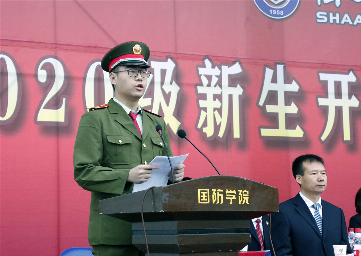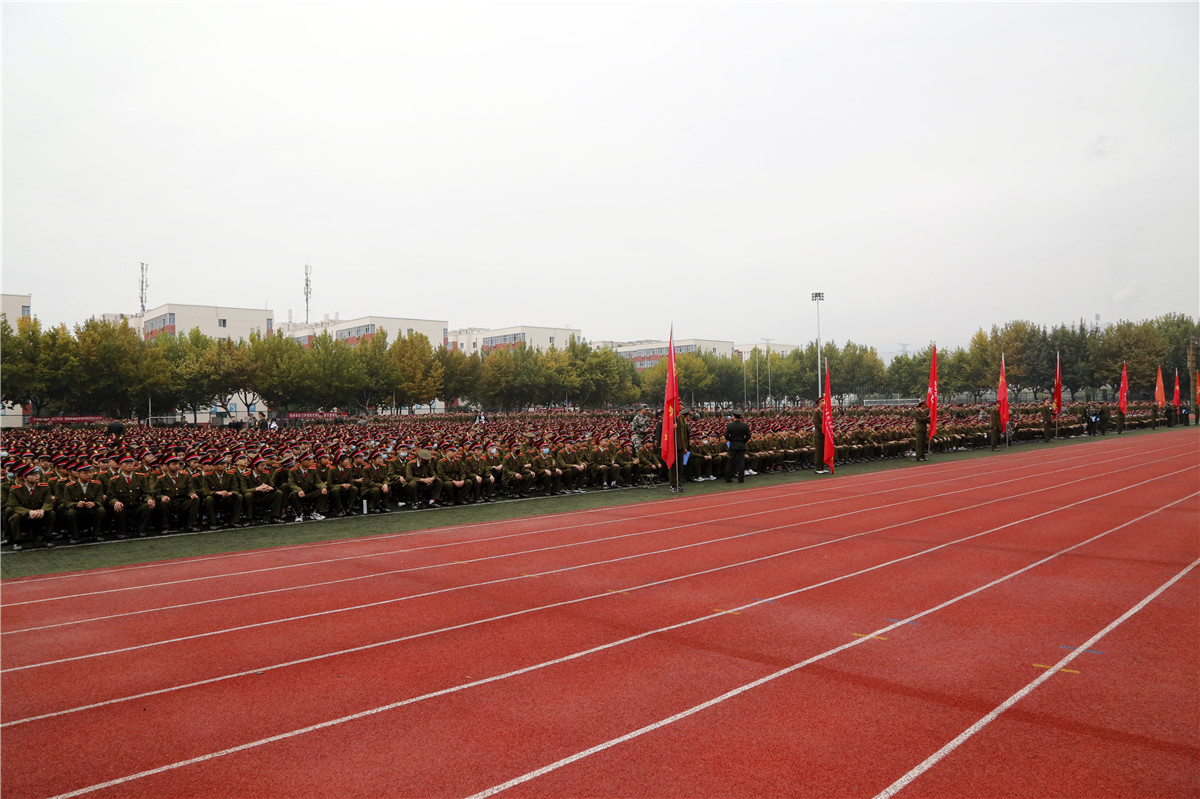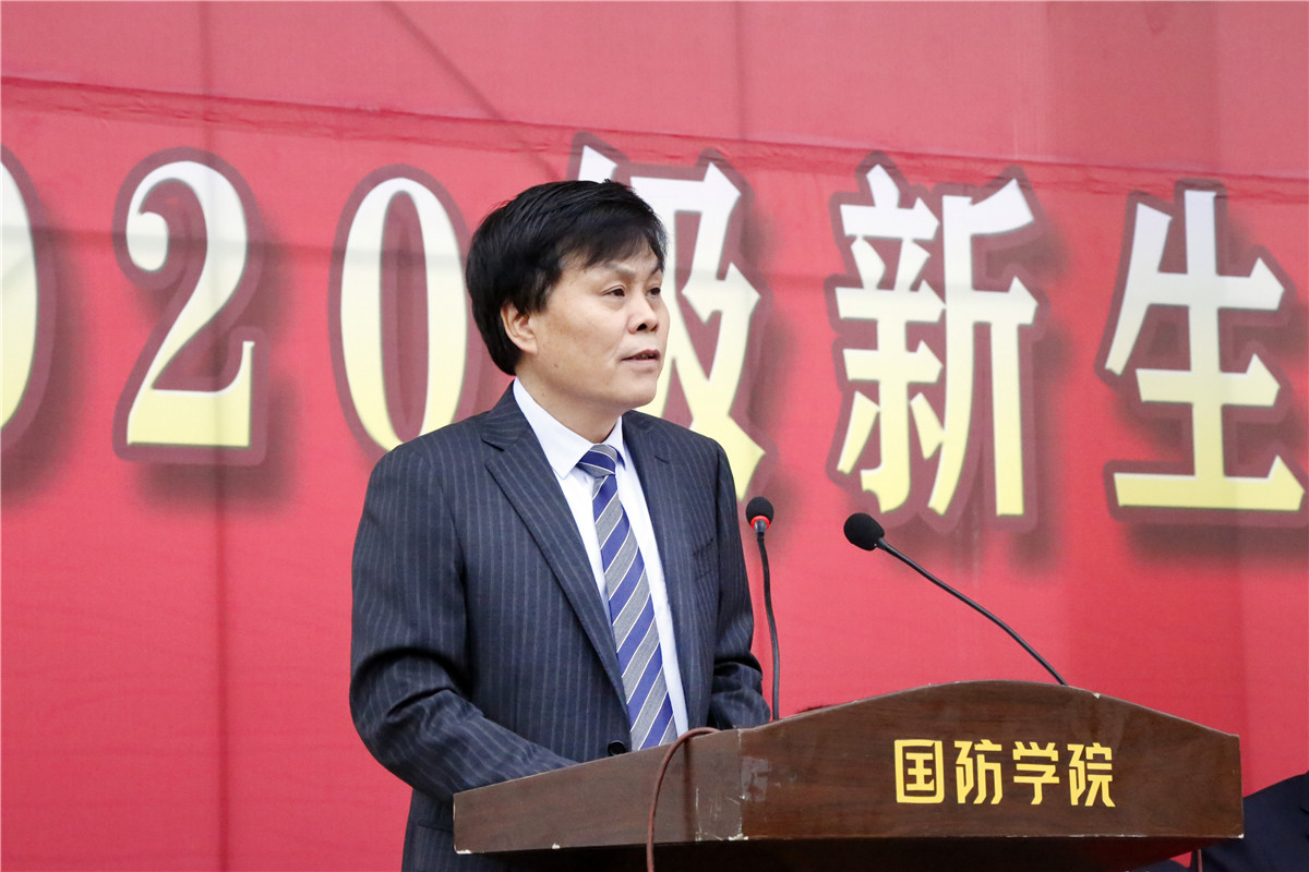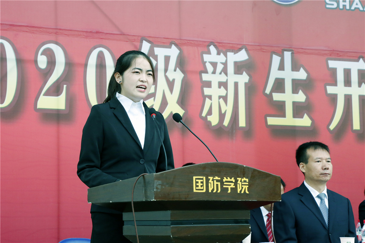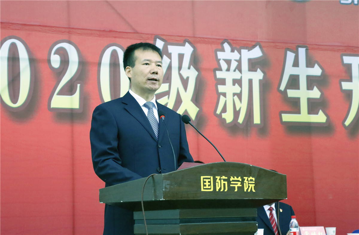 军训团团长韩文涛对参训师生提出了要求和希望,强调了国防教育的重要性以及军训的意义,并给各营授旗。副院长全卫强宣读了2020级新生入学工作安排。