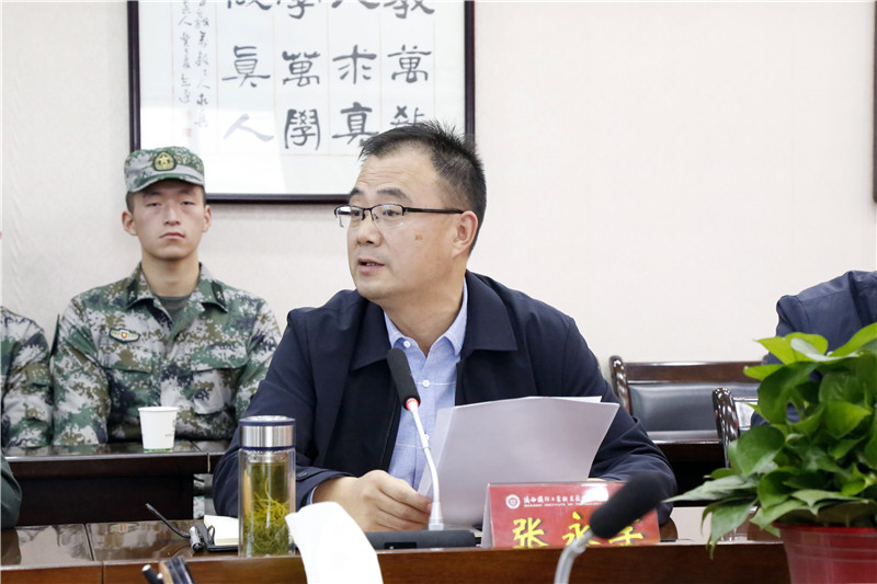 随后在我校第一会议室召开了征兵工作检查调研座谈会,院长刘敏涵、副院长张永军、学校征兵工作站和相关职能部门负责人等参加了会议,会议由我校副书记杨聪主持。副院长张永军就我校征兵工作开展情况向调研组进行了汇报。