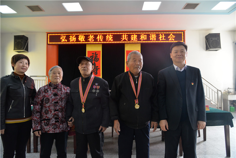 在茶话会上,张卫平书记、杨静妮副主任分别向抗美援朝志愿军老战士上官定禄和杨兆富颁发了纪念章。上官定禄同志1951年参加抗美援朝志愿军,立三等功1次,其爱人李引莲同志1957年赴朝鲜从事军队后勤保障。杨兆福同志1956年参加抗美援朝志愿军,1959年参加西藏平叛。